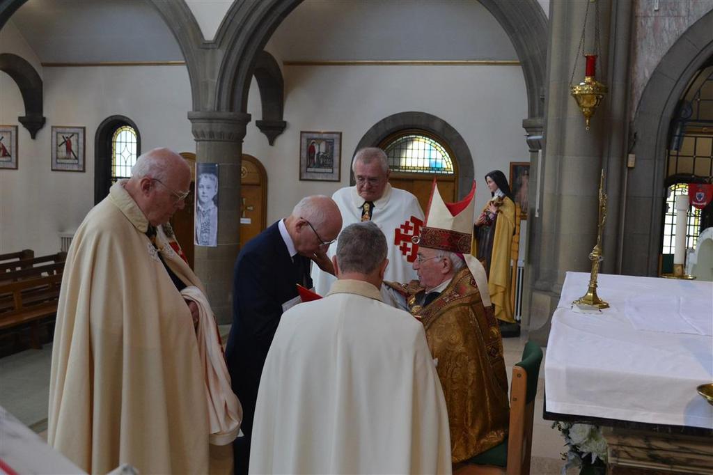 In another departure from custom the ceremonies were held in Motherwell Cathedral for the first time, at the kind invitation of Bishop Toal, an episcopal member. They were conducted by Archbishop Conti in his capacity as Grand Prior of the Scottish Lieutenancy and the Mass was enhanced by the singing of the Motherwell diocesan choir.