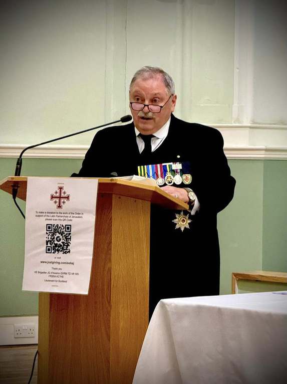 At a meeting held immediately after Mass the very large cohort of Scottish Knights and Dames of the Holy Sepulchre heard of the realities of the Order’s work from Prof. Bart McGettrick, a member of the Lieutenancy and one of the three members of the Order’s Holy Land Commission who oversee the Order’s work on projects on behalf of the international Order’s ruling Council. He gave an up-to-date account of the situation in the Holy Land based on his recent three week stay there. Prof McGettrick emphasised the Order’s role in helping get rid of separation, division and conflicts between the different groups living there. He highlighted the importance of working to resolve injustice wherever it is found in order to let hope grow in people’s hearts.
