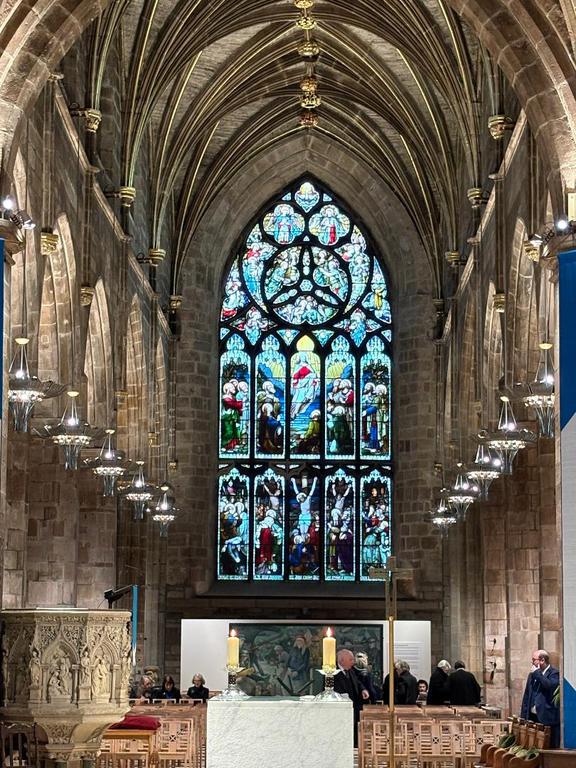 The sheer numbers at the Mass was testimony to the impact which Pope Francis had had on many people from many walks of life. The sanctuary of the cathedral contained a large number of concelebrating archdiocesan clergy while the body of the church was packed with national civic and religious leaders, laity from all over Scotland, as well as representatives of archdiocesan Catholic schools, and Catholic organisations. Among the latter was a robed delegation of 13 Knights and Dames of the Lieutenancy of Scotland led by their Lieutenant. As members of a papal Order (i.e. one under the protection of the Supreme Pontiff) they were mourning the loss the whole Lieutenancy felt at the loss of their Supreme leader.